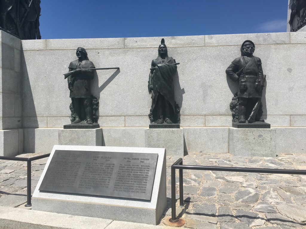 I headed out to the big monument and, being a nerd, read all the plaques which told a version of the Mormon migration tale and explained who the various people were on the monument who played roles in the migration story. Hunters, trappers, and Indians on the back side of the monument, pioneers on the front. Movement from the past (on the back side of the monument) to the more recent present (closer to the front of the monument) and the location of statues in relation to one another plays a big role here and adds significant depth to the statues, monuments, and location as a whole.