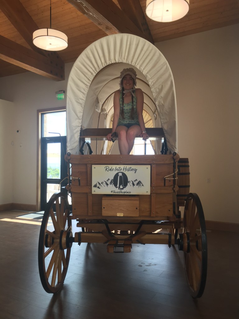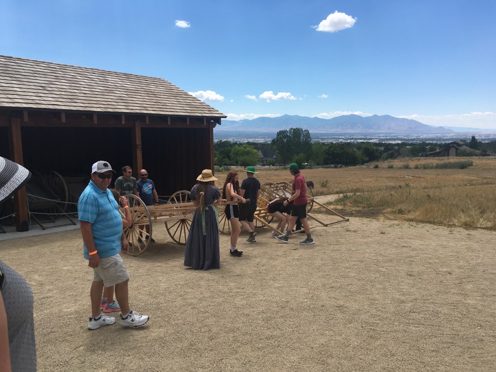 Alright, I’m a victim of checking this kind of stuff out- but mostly because I’m fascinated by the mythic understanding these experiences promote. Did I tell you about “This is the Place Heritage Park” in Salt Lake City Utah? No? Well, I will fix that in a later post. For now, “This is the Place” is a place that interprets the early settlement period of Utah, located at the supposed site where Brigham Young is said to have declared that the Salt Lake Basin below was the new Mormon homeland. It’s… interesting. From an old time community hall selling “Brigham’s Donuts” to opportunities to try out hauling a Handcart (which was an arduous task back in the day where hundreds of people died on the move out West with the carts due to poor planning and poverty) and having a good old time. I call it Mormon Disneyland, and there are many good reasons for that.
